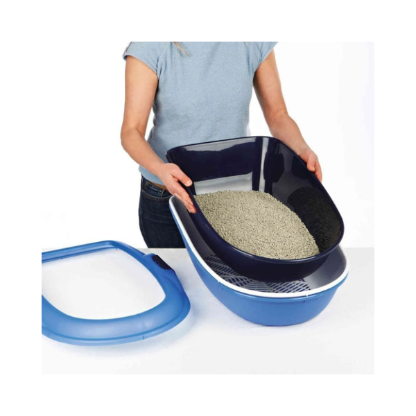 LITERA SANITARIA BERTO: Litera compuesta por 3 parte divididas en dos bandejas y un tamiz, limpiado mas fácil y rápida, a su vez permite reducir el consumo del lecho, con cierres a presión, El borde doble impide que escape de arena y la orina.